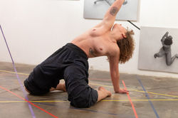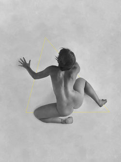 Trinacria (2019) is a performative installation exploring how cultural threads and geographic narratives shape identity. It celebrates ethnographic differences as the cement for a sense of cross-cultural belonging. Four photographs frame the artist’s naked body within triangular forms, echoing Sicily’s shape while exposing the impossibility of reducing a homeland to something flat or fixed. Sicily — land of water and fire, Arabs and Norsemen, Greek Mythology and Arthurian Romance — becomes both point of origin and living metaphor. Trinacria invites viewers into a porous, shared space where stories, memories, landscapes, and movement continually transform.